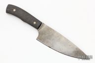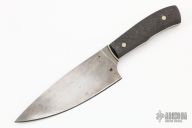 This Chef's Knife by features a drop point blade with a full tang construction.  .118" Blade Stock.  1.922" Blade Depth.  The handle has carbon fiber scales over G-10 liners.  Includes a padded zippered case.  Scuffs, scratches and oxidation are visible on the blade otherwise the knife is in fair condition.