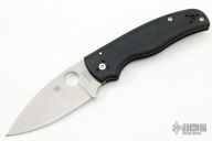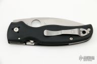 This Shaman Pln by Spyderco features a stonewashed spear point blade with notched thumb and finger rests, thumbhole. The handle has black G-10 scales, inlaid stainless steel liners and a stonewashed stainless steel backspacer, 4-way reversible stainless steel clip, lanyard hole at the butt. Excellent condition.