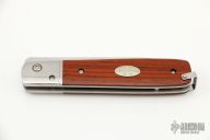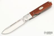 The Gentleman's Pocket Knife, by Fallkniven features a laminated cobalt steel drop point blade. The handle has stainless steel bolsters, cocobolo scales, Fallkniven's signature 3 crown oval shield is inlaid in the handle. There is a steel shackle at the butt of the knife for the purpose of attaching a lanyard. Excellent condition. Comes with a zippered case.