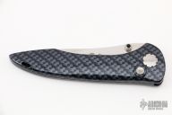 This button lock folder by TiNives features a polished blade with false top edge and dual thumb studs. The handle is multi-color synthetic frame with button and lanyard hole. Excellent condition. Comes with original box.