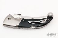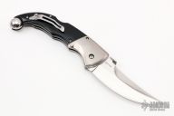 Designed by Lynn C. Thompson, the Talwar™ blends the sleek style of the east with the dynamic technology of the west. Using a Titanium frame as a foundation, the pistol grip handle features highly polished black linen micarta slabs with deeply carved finger grooves that allow it to settle naturally in one’s hand for maximum control. And its curved shape allows for reverse, or palm reinforced gripping techniques. Additionally, a hard-hitting ball shaped pommel enhances the Talwar’s™ versatility. Made from mirror polished stainless steel, it can be used as a striking tool to deliver blows to bony areas, nerve centers, and other soft targets. It can also serve as a secondary grasping point, allowing its user to extend his reach by as much as three inches.