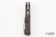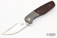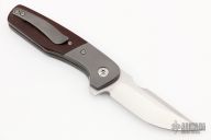 This Kestrel by Jared Price features a satin finished clip point blade with swedge, and flipper. The handle is comprised of titanium bolsters, and micarta scales over blasted titanium liners, blasted titanium pocket clip is positioned for right hand, tip up carry. Lanyard pin in pommel and floating micarta backspacer. Excellent blade seating, detent and lock up, rides on bearings. Has a couple light marks on the clip. Excellent condition.