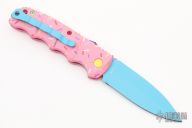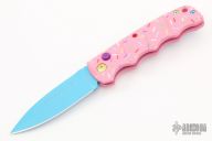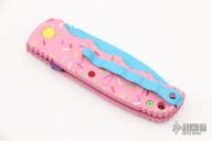 Have you ever been unfortunate enough to have to share a donut? Your plight only gets worse when you find you have to cover your high-speed, low-drag, modified, custom, mirror-edged piece of pocket jewelry in sticky sweetness. What you need is a knife designed from the ground up to go to war with a donut. And although its path to existence was unorthodox, the Dessert Warrior is here! This automatic will snap open before anyone can take more than their half of the donut. The handle is bright pink with sprinkles, and the blade has a candy blue finish, making the knife blend in with the pretty pastries of the shop. Gone are the days of not having the right tool for the job!