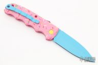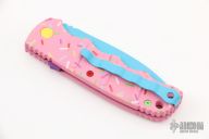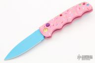 Have you ever been unfortunate enough to have to share a donut? Your plight only gets worse when you find you have to cover your high-speed, low-drag, modified, custom, mirror-edged piece of pocket jewelry in sticky sweetness. What you need is a knife designed from the ground up to go to war with a donut. And although its path to existence was unorthodox, the Dessert Warrior is here! This automatic will snap open before anyone can take more than their half of the donut. The handle is bright pink with sprinkles, and the blade has a candy blue finish, making the knife blend in with the pretty pastries of the shop. Gone are the days of not having the right tool for the job!