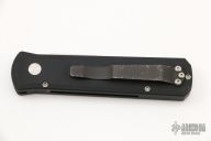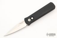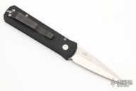 This 721 Godson from Pro-Tech Knives features a satin finished blade with swedge. The handle has a black aluminum frame with satin hardware and black tip up clip. Comes with original box and papers. Has some scratches on the clip and blade, otherwise good condition.