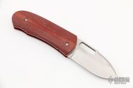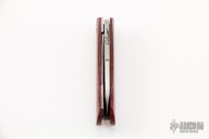 This Small Ultralight Snubnose by Chuck Gedraitis features a stonewashed blade with a thumbhole. The handle has red linen micarta scales, a single orange peel finished titanium liner, black G-10 backspacer. Nice detent, lockup and blade seating. Comes with a zippered case and COA. Excellent condition.