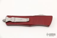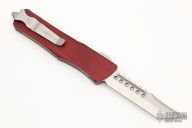 This Troodon by Microtech features a stonewash Hellhound blade with satin finished flats.  The handle has a merlot aluminum frame with bead blasted hardware and tip down clip. Comes with original box and papers. Dated 12/2019.  Excellent condition.
