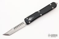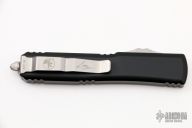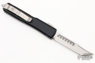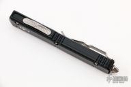 This Ultratech by Microtech Knives features a stonewashed Hellhound blade with satin flats and false top edge. The handle has a black aluminum frame with tip down blasted stainless steel clip and hardware. Comes with original box and papers. 04/2022, S/N 113. Excellent condition.