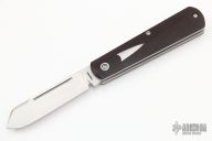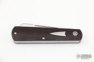This Barlow slipjoint by Enrique Pena features a hand rub satin finish blade with swedge, and long pull nail nick. The handle has brown canvas micarta covers over gray liners, titanium liners. Stainless steel shield, collar, and spring.   Excellent condition.