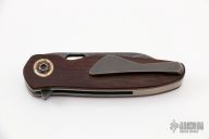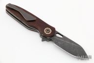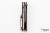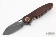 This Stray Pup #100 by Keanison Knives features a dark stonewashed blade with thumbhole and flipper. The handle has Westinghouse "Sandwich" micarta scales, bead blasted titanium liners, mokume backspacer and pivot collars, and a tip up titanium clip with hidden screws. Rides on Skiff bearings, nice detent, lockup and blade seating. Comes with original box and Dog Tag dated 8/18/22. New from maker at the 20221 USN Gathering.