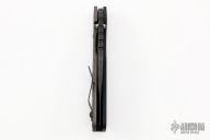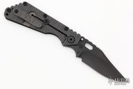 This Mick Strider SMF Fatty framelock folder features a black bowie blade with thumbhole and notched thumbrest. The handle has a black aluminum and flamed titanium frame with titanium clip, tip up carry. Jimping on blade spine. Nice lockup, detent, and blade seating.  Excellent Condition.