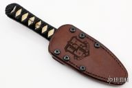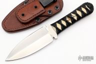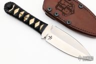 This SBK Assassin from Borka Blades features a double edged hand rub satin finished blade with .190" blade stock and 1.603" blade depth. The handle is comprised of black leather wrap over white stingray skin with menukis. Comes with a brown leather sheath by Chatanooga Leather Works. Includes a zippered case. Excellent condition. Comes with COA dated 2019.