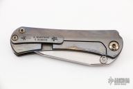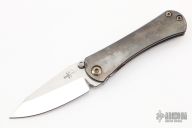 This SBSP by Borka Blades features a mirror finished blade with satin flats and dual thumbstuds. The handle has a "Cosmic Finished" titanium frame with a matching tip up clip. Nice detent, lockup and blade seating. Comes with zippered case and COA dated 03/2022. Excellent condition.
