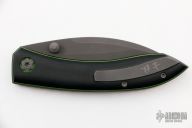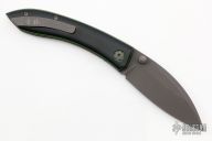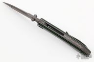 This Shihlin by Jared Oeser features an acid etched Magnacut blade with false top edge and dual thumbstuds. The handle has black linen micarta scales, green/black/grey G-10 liners, textured titanium backspacer.  Titanium tip up pocket clip.  Nice detent, lockup and blade seating. Comes with COA dated June 30, 2022. Comes with a custom hank with Jared's logo and original packaging and sheath. Excellent condition.