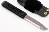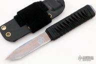 This Titanium Fixed Blade by John Gray features a chisel ground titanium blade with notched thumbrest, .055" blade stock and .701" blade depth, full tang construction with epoxied black cord wrap. Comes with a black kydex sheath with velcro strap. Completely nonmagnetic. New from maker at the 2022 USN Gathering.