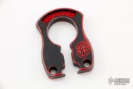This keeper by John Gray is made from aluminum and has been cerakoted black and red with red stingray skin inlays. Has a bottle opener and holes for a key ring. Can be hung from a belt loop. Can also be used as a knuckle. New from maker at the 2022 USN Gathering. This one's pronouns are "He/Him".