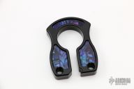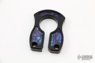 This keeper by John Gray is made from aluminum and has been cerakoted black and has abalone inlays. Has a bottle opener and holes for a key ring. Can be hung from a belt loop. Can also be used as a knuckle. New from maker at the 2022 USN Gathering.