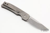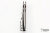 This Ridgeline Auto by Brian Fellhoelter features a tumble finished blade and notched thumbrest. The handle has a stonewash finished titanium frame and a tip up titanium clip. Marked MAGNACUT on blade. New from Maker at USN Gathering 2022.