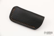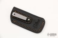 This black leather sheath by SoulBound Leather is made from premium full grain English Bridle Leather from Wickett & Craig and has a stainless steel pocket clip. New from maker at the 2022 USN Gathering. 3.5" tall and 1.5" wide.
