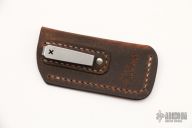 This oil tanned Crazy Horse Water Buffalo leather sheath made by SoulBound Leather and has a stainless steel pocket clip. New from maker at the 2022 USN Gathering. 3.5" tall and 1.5" wide.