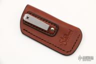This Brown leather sheath by SoulBound Leather is made from premium full grain English Bridle Leather from Wickett & Craig and has a stainless steel pocket clip. New from maker at the 2022 USN Gathering. 3.5" tall and 1.5" wide.