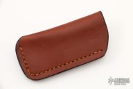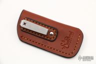 This Brown leather sheath by SoulBound Leather is made from premium full grain English Bridle Leather from Wickett & Craig and has a stainless steel pocket clip. New from maker at the 2022 USN Gathering. 3.5" tall and 1.5" wide.