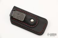 This Black leather sheath by SoulBound Leather is made from premium full grain English Bridle Leather from Wickett & Craig and has an Ulti-clip. New from maker at the 2022 USN Gathering. 3.5" tall and 1.5" wide.