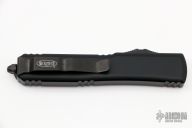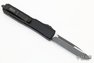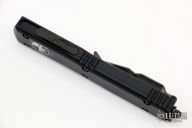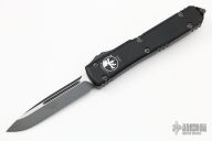 This Ultratech OTF automatic by Microtech features a S/E DLC stonewash finished blade with a standard edge. Black aluminum frame with black hardware and stainless steel clip. Glass breaker. Comes with original box and papers. New from the 2022 Blade Show.