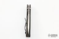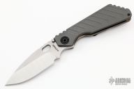 This Mick Strider SNG Fatty framelock folder features a stonewashed blade with thumbhole and notched thumbrest. The handle has a gray aluminum and orange peel finished and anodized titanium frame with titanium clip, tip up carry. Jimping on blade spine. Nice lockup, detent, and blade seating. New from maker at the 2022 USN Gathering.
