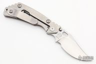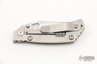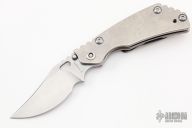 This PT Persian by Mick Strider features a stonewashed blade with notched thumbrest and thumbhole. The handle has a stonewash finished titanium frame with matching tip up clip. New from maker at the 2022 USN Gathering.