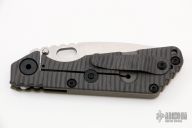 In 1988, he began making specialized knives for use by the military. This turned out to be fortunate turn of events, both for Mick and for the knife using world at large. Mick’s approach was to not get burdened by the weight of past designs. He started with a tabula rasa, a clean slate, informed only by his own experiences and knowledge of what a soldier needed in a knife. The knives he made didn’t look like the hunter-inspired knives seen in most PXs; instead they were almost brutish in their functionality: beefy, solid, and with unbreakable ¼” stock full tangs. These knives were the first indication of his innovative approach: in addition to their utilitarian design, the knives carried a subdued finish and subdued sheaths. No one carrying a Strider knife was going to be spotted because of sunlight glinting off of polished steel or a glossy leather sheath. Soldiers, policemen, and other men going into harm’s way couldn’t buy them fast enough. Mick sampled some good ideas, but made them great. For instance, he was not the first to wrap a knife handle with paracord, but he was the first to do it in a way that was tough enough for sustained infantry use. His knife line grew over the following years to include different varieties of fixed blades, all distinctive and many with specialized uses. But constant in all of them was a disregard for convention, and a desire to try new ideas. An example of this was the Ajax – it featured a very wide blade surface clearly designed to inflict damage. It drew on the weapons carried by Roman legionnaires, yet was modern and usable in the 21stCentury battlefield. Mick also worked on his technical skills, always striving to become better at the physical craft. At the 2002 Blade Show, a group of the best tactical knifemakers in the country decided to compete with each other to produce the most innovative and interesting fixed “battle blade” at the show. Mick’s entry, an incredible integral knife made out of ½” titanium stock with a zippered composite blade, gorgeous handles, and integral guard was the unanimous winner, and effectively retired the competition.