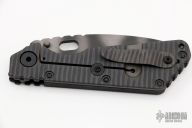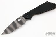 This SMF from Strider Knives features a tiger stripe blade and textured black G-10 and flamed titanium handle and matching tip up titanium clip. Notches on thumbrest, rear of handle, and lockup. Includes Hinderer "Lock Bar Stabilizer" for maximum reverse lock retention. New from maker at the 2022 USN Gathering.