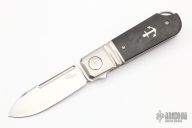 This Ahoy Framelock Flipper by Ken Onion features a hand rub satin finished blade with notched thumbrest, fullers and flipper. The handle has a satin finished titanium bolsters with integral liners, marble carbon fiber scales, titanium anchor escutcheon, satin titanium tip up clip and backspacer. Rides on bearings, nice detent, lockup and blade seating. New from maker at the 2022 USN Gathering.