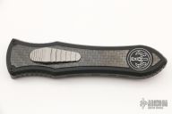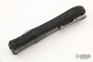 This knife is a Deadlock Model C by Grant and Gavin Hawk. It has a double-edged stonewashed blade. The handle has a carbon fiber and black aluminum frame with a tip down spring clip, titanium. The thumb slide on the handle is also titanium and handle has titanium overlays. Comes with a cloth pouch. Grant and Gavin Hawk set out to create a double action OTF with no blade play.... They did it, NO blade play. Excellent Condition.