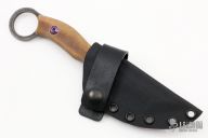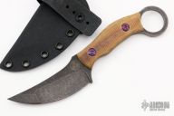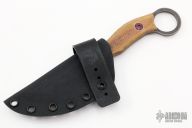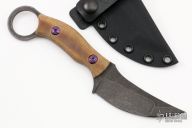 This Cyrax by Jake McCoy features an acid stonewashed blade with multi-grind, .137" blade stock and 1.155" blade depth, full tang construction with butterscotch Westinghouse canvas micarta scales and anodized titanium hardware. Comes with a kydex sheath, original box and COA dated 8/18/22. New from maker at the 2022 USN Gathering.