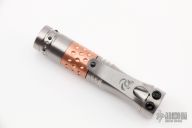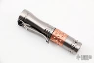 This Hoku flashlight from Mitch Lum/Laulima Metal Craft and Joshua Dawson features a titanium and copper body. 519C 4500 emitter.   Reflector optic.  Takes a single 10440 battery.  Titanium Pocket Clip. This piece comes with a custom pouch and original info card, dated 09/02/2022. DOES NOT INCLUDE BATTERY. New from maker.