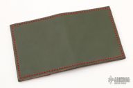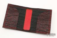 This Bi-fold Wallet by Garza Leather Goods is 100% handmade. The outside is green Italian leather, black/red shark skin pockets, red kangaroo liner inside. Comes with original box. New from maker at the 2022 USN Gathering.