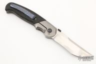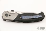 This Shakar Framelock by David Sharp features a hand rub satin finished blade with a zirconium thumbdisc. The handle has a bead blasted titanium frame, raindrop carbon fiber scales, tip up mokuti clip and a carbon fiber backspacer, zirconium pivot collars. Nice detent, lockup and blade seating. Nice detent, lockup and blade seating. Excellent condition.