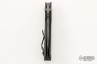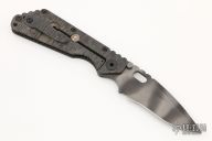 This SMF CC by Strider Knives features a tiger striped blade and carbon fiber and flame finished titanium handle and tip up titanium clip. Notches on thumbrest, rear of handle, and early lockup. Includes Hinderer "Lock Bar Stabilizer" for maximum reverse lock retention. Nice detent, lockup and blade seating. Excellent condition. This knife is the USN Suspect edition.