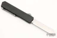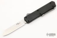 This G13 OTF Auto by Golgoth Knives features a satin finished blade. The handle has a black aluminum chassis with anodized titanium button and tip down titanium clip. Comes with velcro case. New from maker at the 2022 USN Gathering. #1886