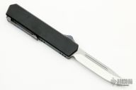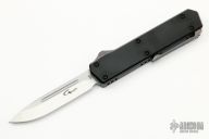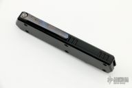 This G13 OTF Auto by Golgoth Knives features a satin finished blade. The handle has a black aluminum chassis with anodized titanium button and tip down titanium clip. Comes with velcro case. New from maker at the 2022 USN Gathering. #1788