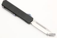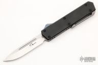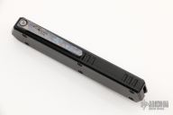 This G13 OTF Auto by Golgoth Knives features a satin finished blade. The handle has a black aluminum chassis with anodized titanium button and tip down titanium clip. Comes with velcro case. New from maker at the 2022 USN Gathering. #1787