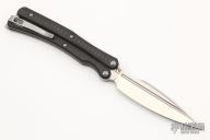 This BaliTac by Max Knives is a Grind Tactical Deisgn. It features a satin finished blade with fullers. The handles have carbon fiber scales, bead blasted titanium liners and T-latch, tip up stainless steel clip. Comes with velcro case and COA #105/150. New from maker at the 2022 USN Gathering.