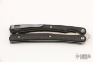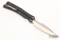 This BaliTac by Max Knives is a Grind Tactical Deisgn. It features a satin finished blade with fullers. The handles have carbon fiber scales, bead blasted titanium liners and T-latch, tip up stainless steel clip. Comes with velcro case and COA #126/150. New from maker at the 2022 USN Gathering.
