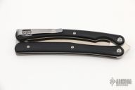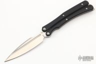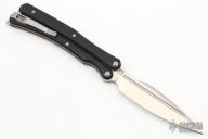 This BaliTac by Max Knives is a Grind Tactical Deisgn. It features a satin finished blade with fullers. The handles have Black G-10 scales, bead blasted titanium liners and T-latch, tip up stainless steel clip. Comes with velcro case and COA #82/150. New from maker at the 2022 USN Gathering.