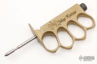 LF&C 1918 OTF Icepick Auto by Max Knives. Push the button to deploy the blade, push the button and push the spike against a hard surface to retract. Comes with a velcro case. New from maker at the 2022 USN Gathering.