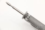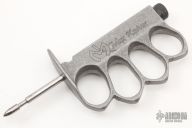 LF&C 1918 OTF Icepick Auto by Max Knives. Push the button to deploy the blade, push the button and push the spike against a hard surface to retract. Comes with a velcro case. New from maker at the 2022 USN Gathering.