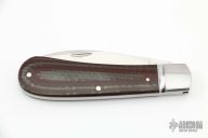 This Zulu Spear by Mike Zscherny features a spear point blade with a hand rubbed satin finish and nail nick. The handle has a fluted stainless steel bolsters, red G-10/carbon fiber covers, stainless steel liners and springs. Half stop on blade, flush in all positions. Excellent Condition.
