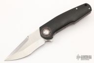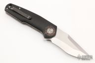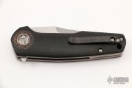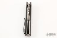 This Ronin Flipper by Jim Burke features a clip point blade with satin finish recurve multi-grind blade, notched thumbrest and flipper. The handle is comprised of a tumble finish titanium frame with burlap micarta scales and fat carbon pivot rings, superconductor pivot collars. It also has a tip up textured zirconium clip, milled titanium backspacer with "ball drop" ceramic ball inlay. Comes with zipper case. New from maker!