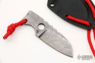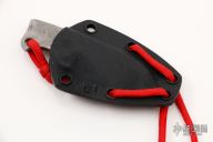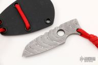 This neck knife by Vox Knives features a Damasteel chisel ground blade with notched thumbrest, .158" blade stock and 1.043" blade depth, integral construction with lanyard hole at the butt. Comes with kydex neck sheath. Excellent condition.